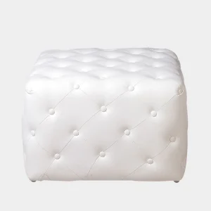 A Classic tufted ottoman in leatherette, solid wood frame with buttons. Size: Small L45.75xW45.75xH45.75 cm Weight capacity: 80 kg