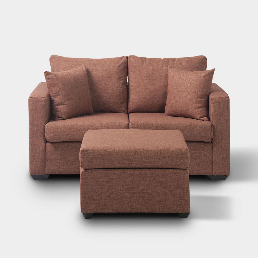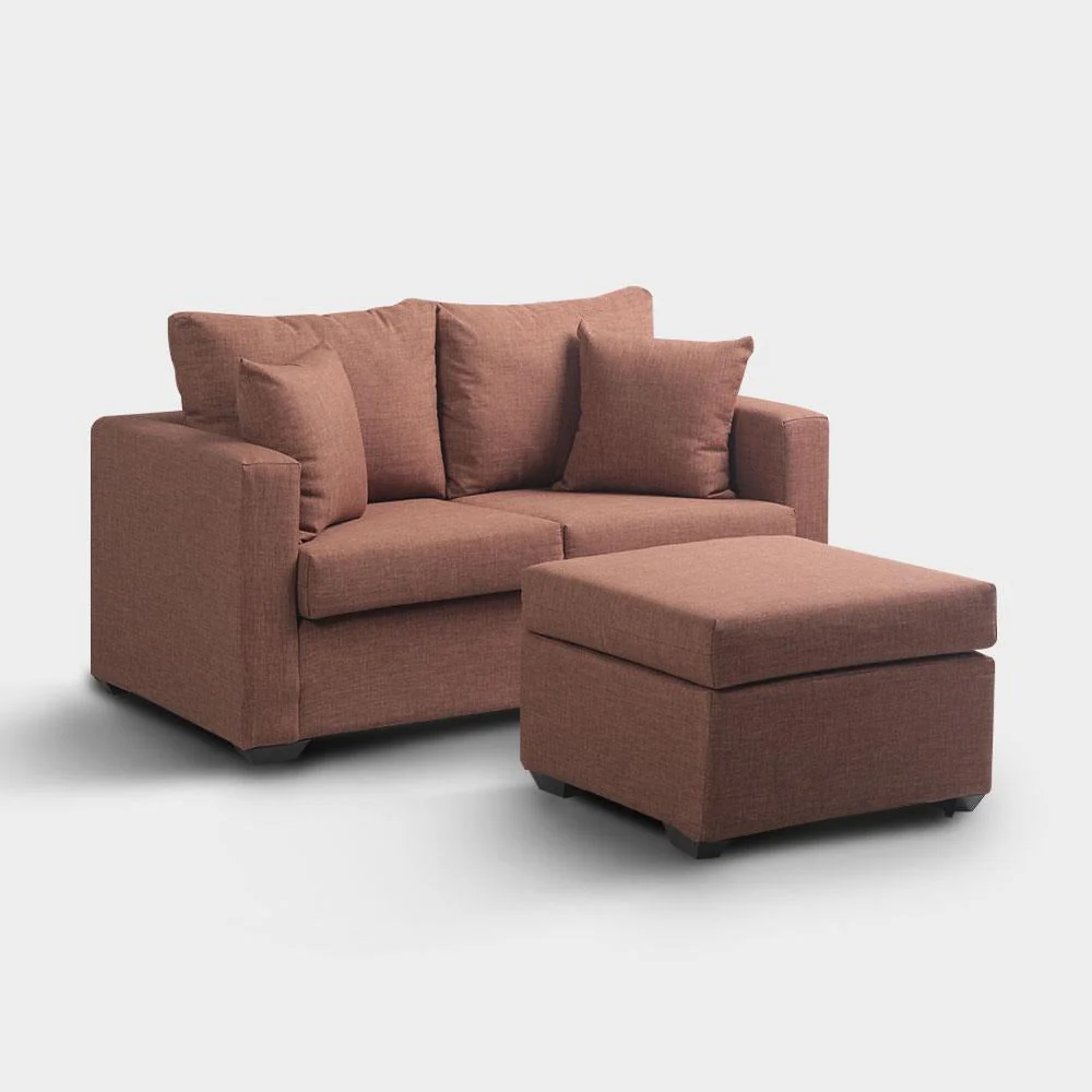 A Modern Contemporary sofa with ottoman made from fabric and gmelina solid wood.