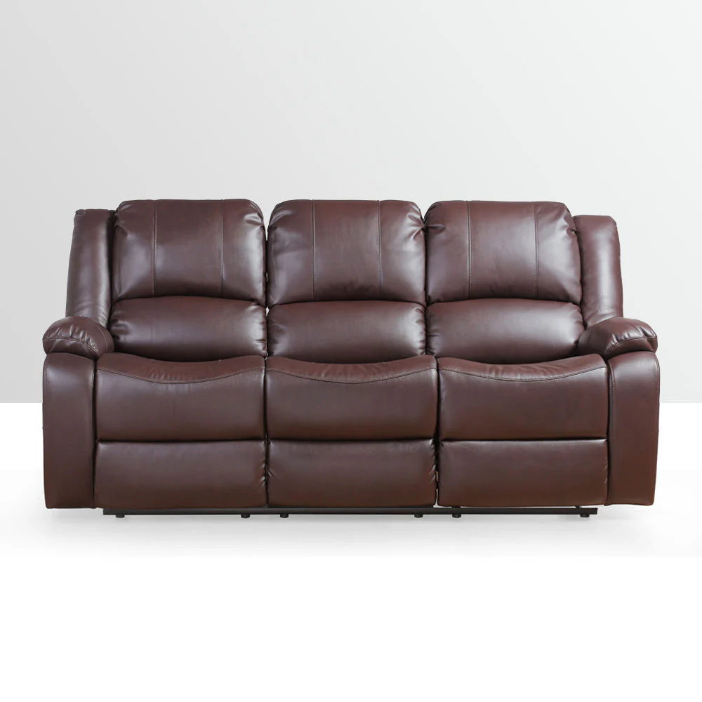 A Modern Contemporary style 3-seater recliner with manual mechanism, fully padded and upholstered in air leather.