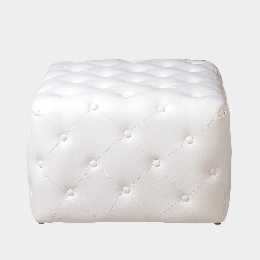 A Classic tufted ottoman in leatherette fabric, solid wood frame with buttons.